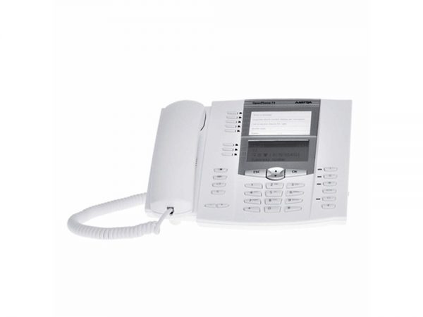 Digital system telephone with 2-wire UPN-interface, for OpenCom 100/ X320 and OpenCom 1000; hands-free talking; wall mounting possible; 4-line display; 3 softkeys/line key with LED and 5 free programmable keys with LED, DHSG-headsetconnector and headsetkey, expandable with 3 KeyExtensions 73P. Aastra-DeTeWe-label, colour icegrey